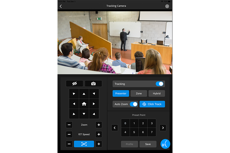 AVer Control Panel is an app designed especially for managing AVer Pro AV and DL Series Cameras. With it you can monitor the camera’s real-time image, control basic camera functions, set preset points, and also initiate auto tracking functions. Moreover, the latest voice control functions let you get rid of pressing buttons. Using an iPad® or iPhone® to manage more than 250 PTZ cameras makes your life easier than ever.